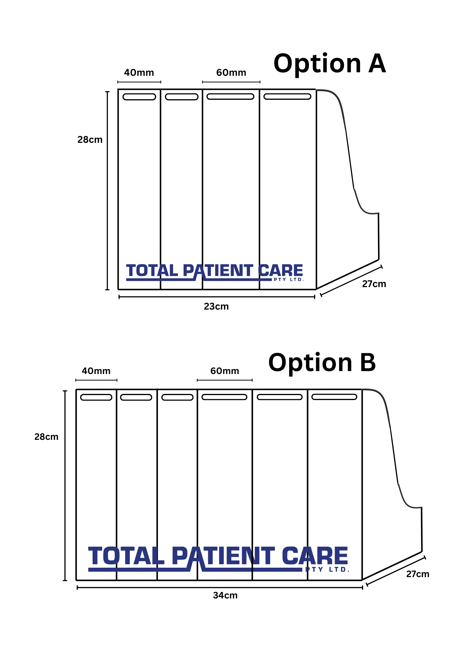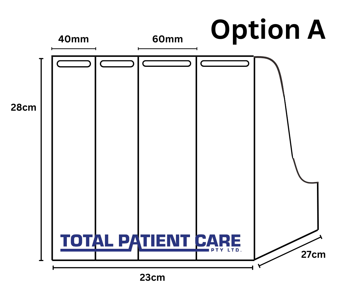 Option A has four slots, two of which can hold rolls up to 38mm and two can hold up to 50mm.