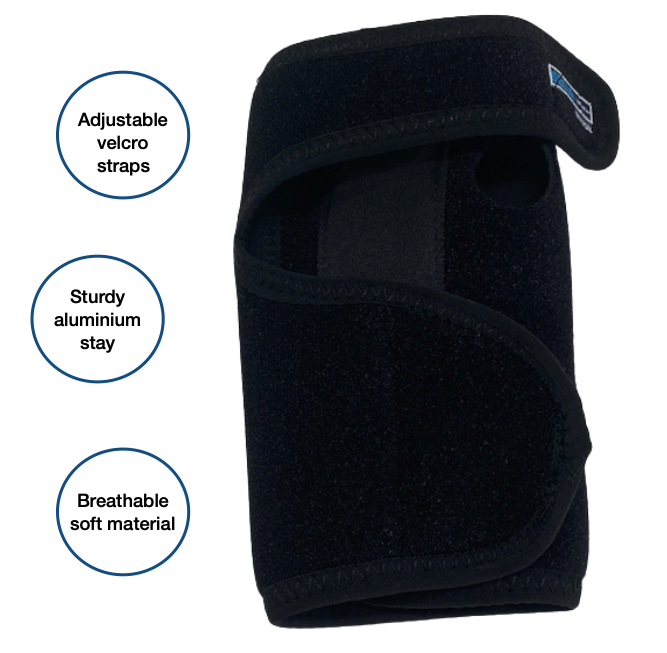 This wrist brace has high quality velcro fastenings for adjustability and compression purposes, and a single aluminium stay for wrist support. Made of breathable material for maximum comfort.